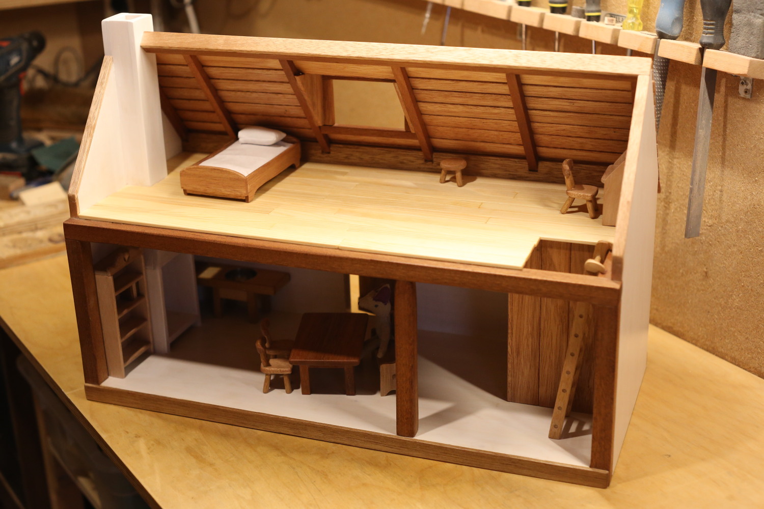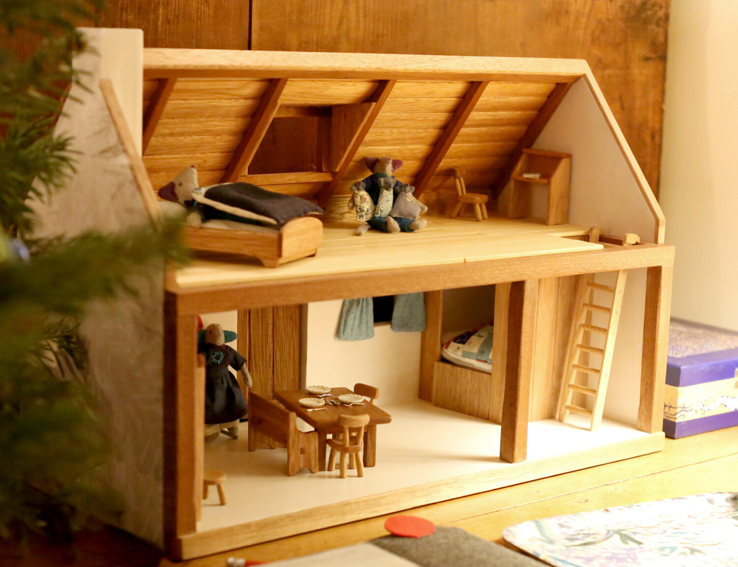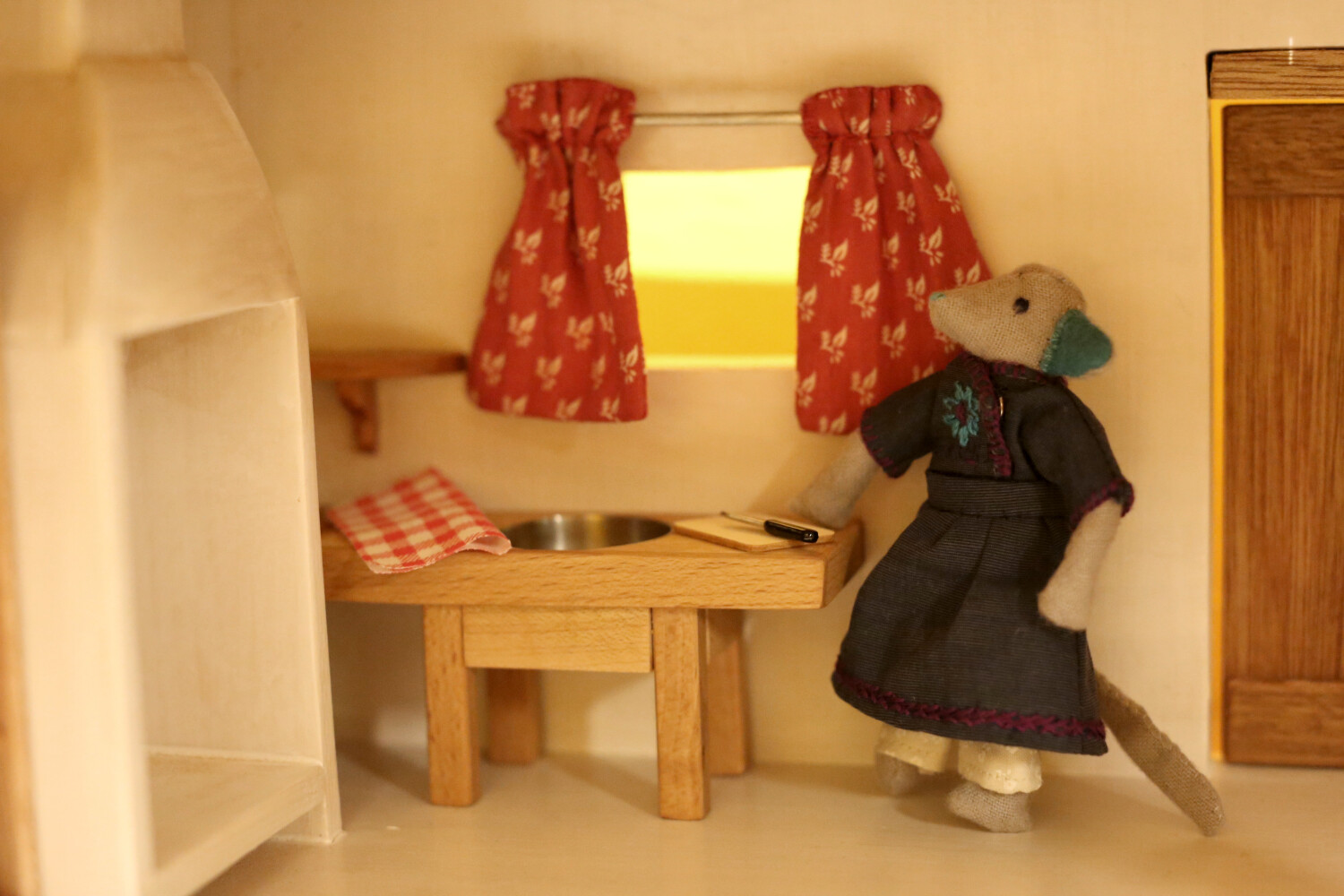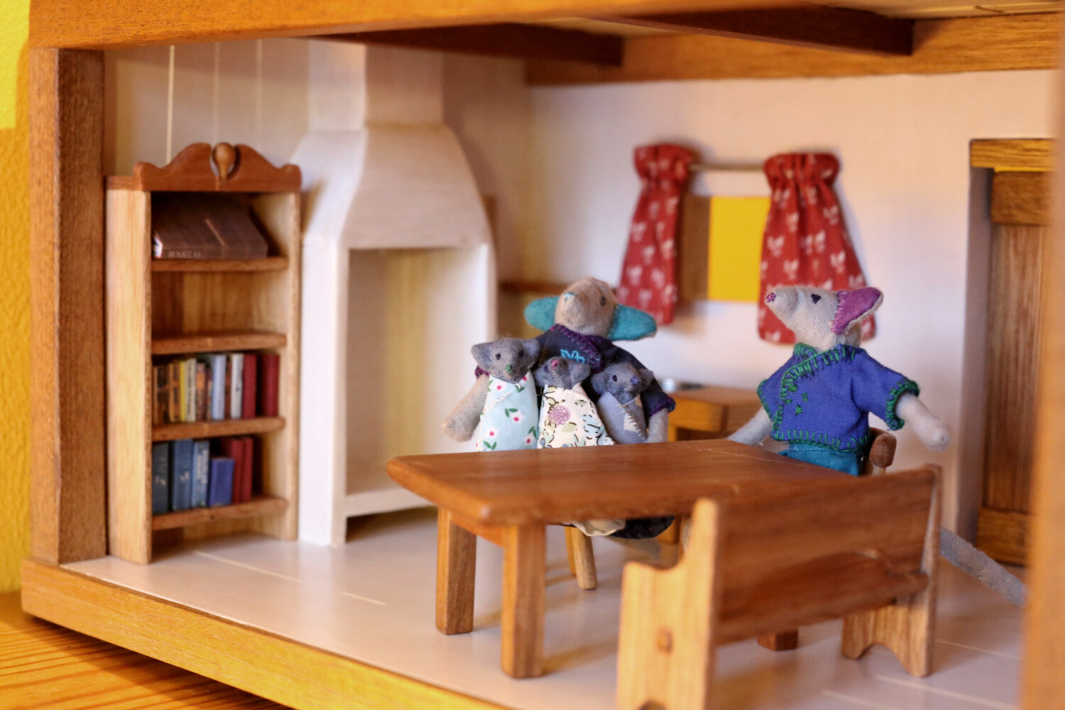Een vriendin heeft nog een trui en een omslagdoek gebreid om de muizen warm te houden en mijn man maakte mini-boekjes voor in de boekenkast met zelfs een echte atlas!