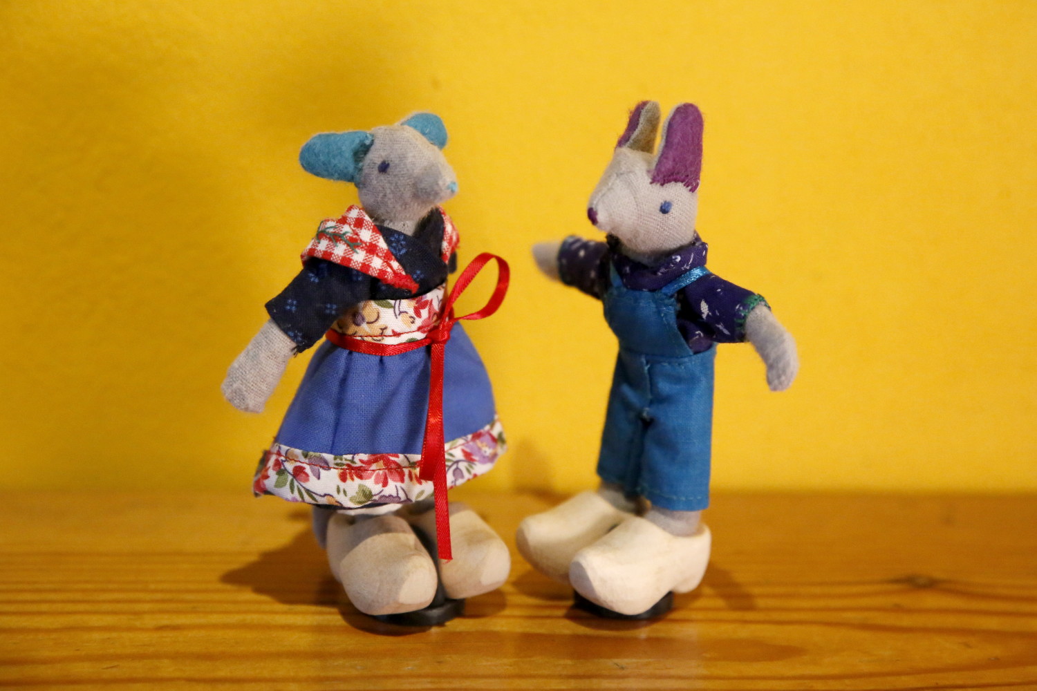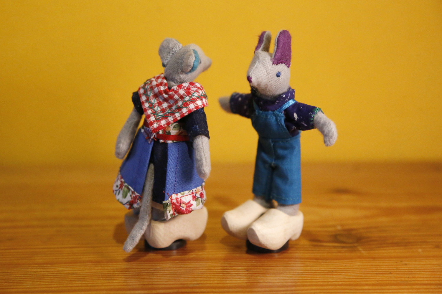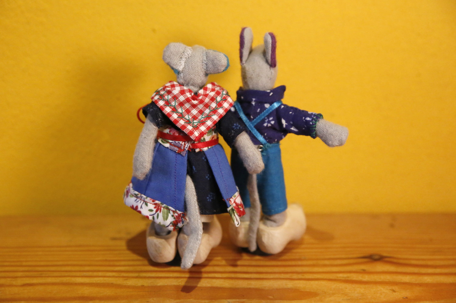 De eerste kleine muis op klompen maakte ik voor een lieve vrouw uit Yorkshire. Zij heeft een poppenhuis en ik vertelde haar over het Muizenhuis van Karina Schaapman en de poppenhuizen van het Rijksmuseum. Ik maakte als kerstcadeau voor haar een kleine muis aangekleed zoals de meisjes in Staphorst. Ik heb er intussen al heel wat gemaakt voor mijn vrienden in het buitenland.
