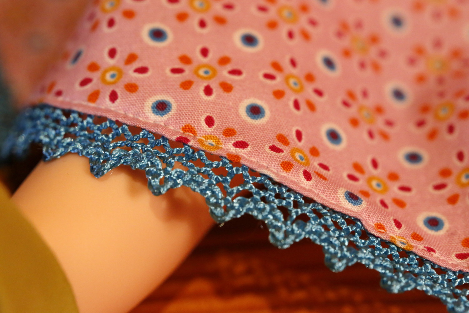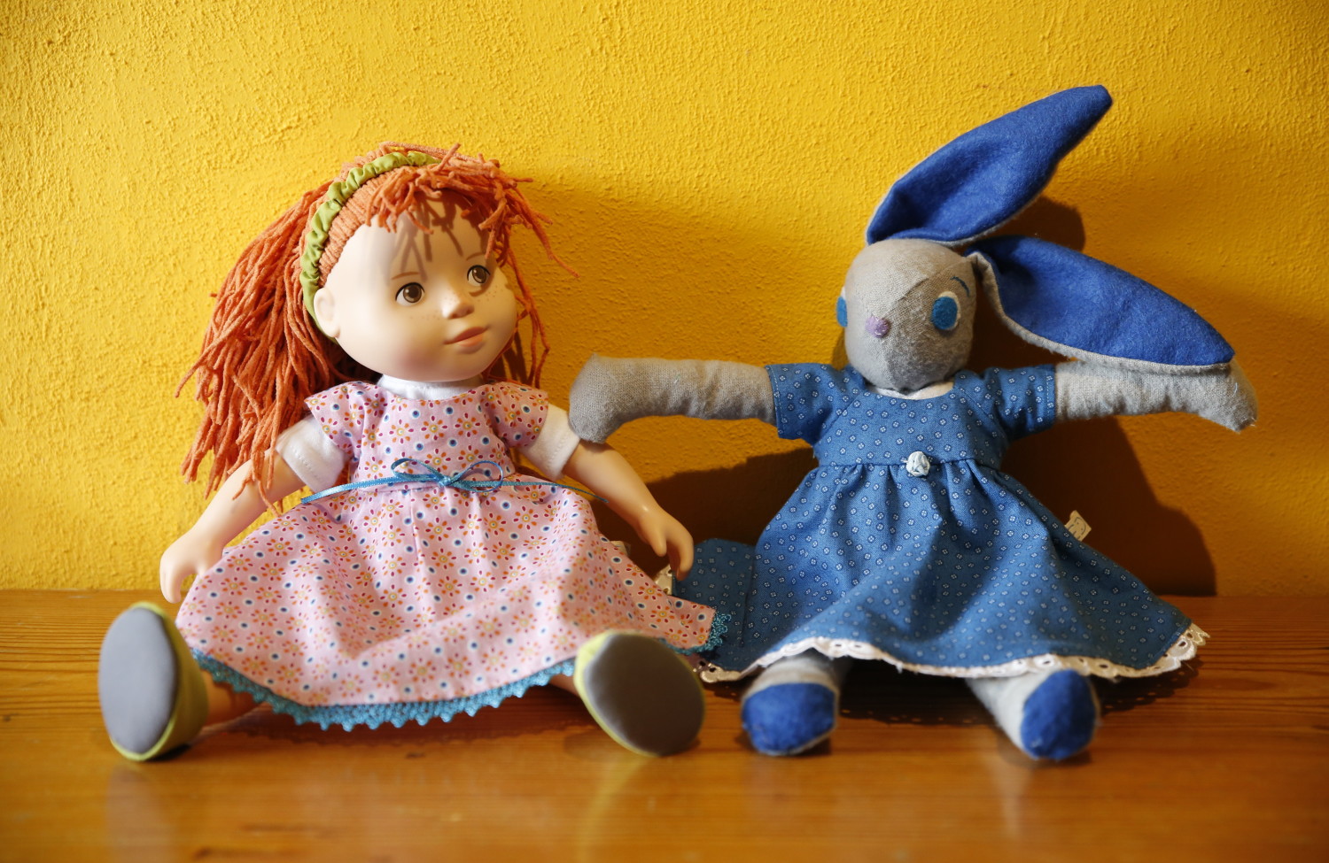 Een vriendin van de familie zag mijn konijn met de rode oren en vroeg of ik ook kleertjes wilde maken voor een pop die ze had voor als haar kleindochter Rose komt logeren.
